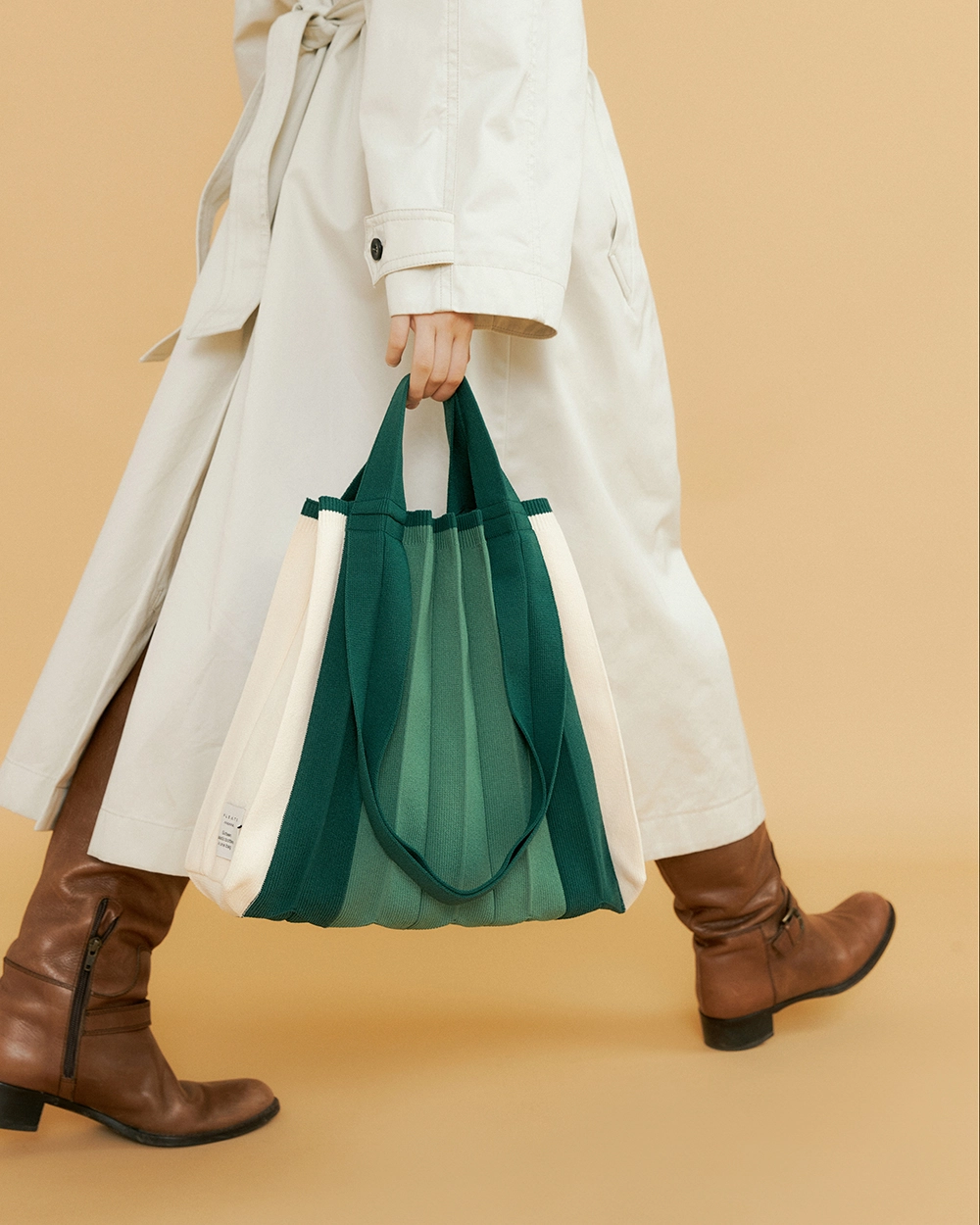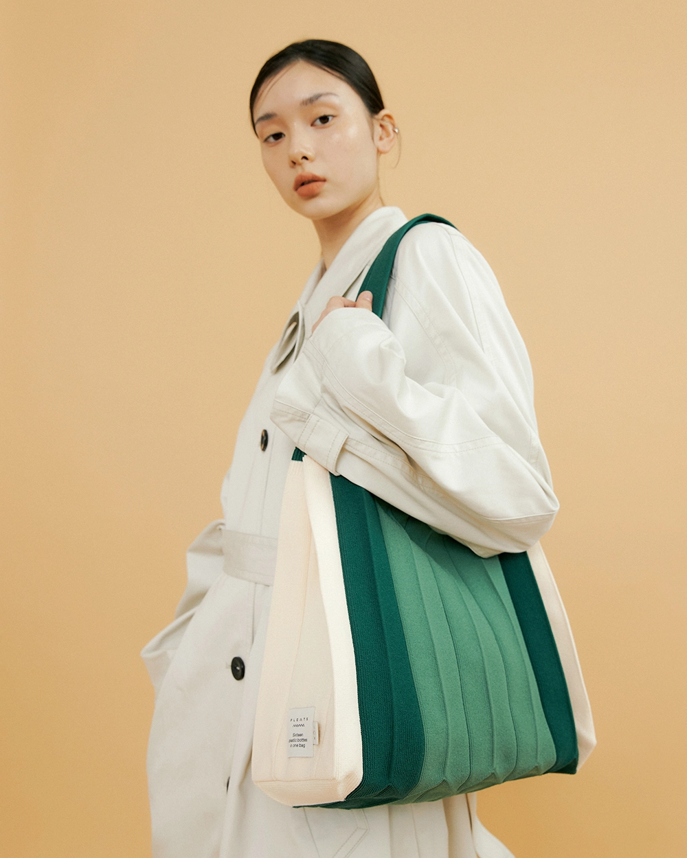 PLEATSMAMA的Two-Way Shopper Bag採用韓國製造的環保針織褶皺材質,結合時尚與實用性,是日常生活中的理想包款。此包具備兩種不同的背帶設計,可以輕鬆轉換成托特包(Tote Bag)或肩背包(Shoulder Bag),多種背法滿足各種場合需求。