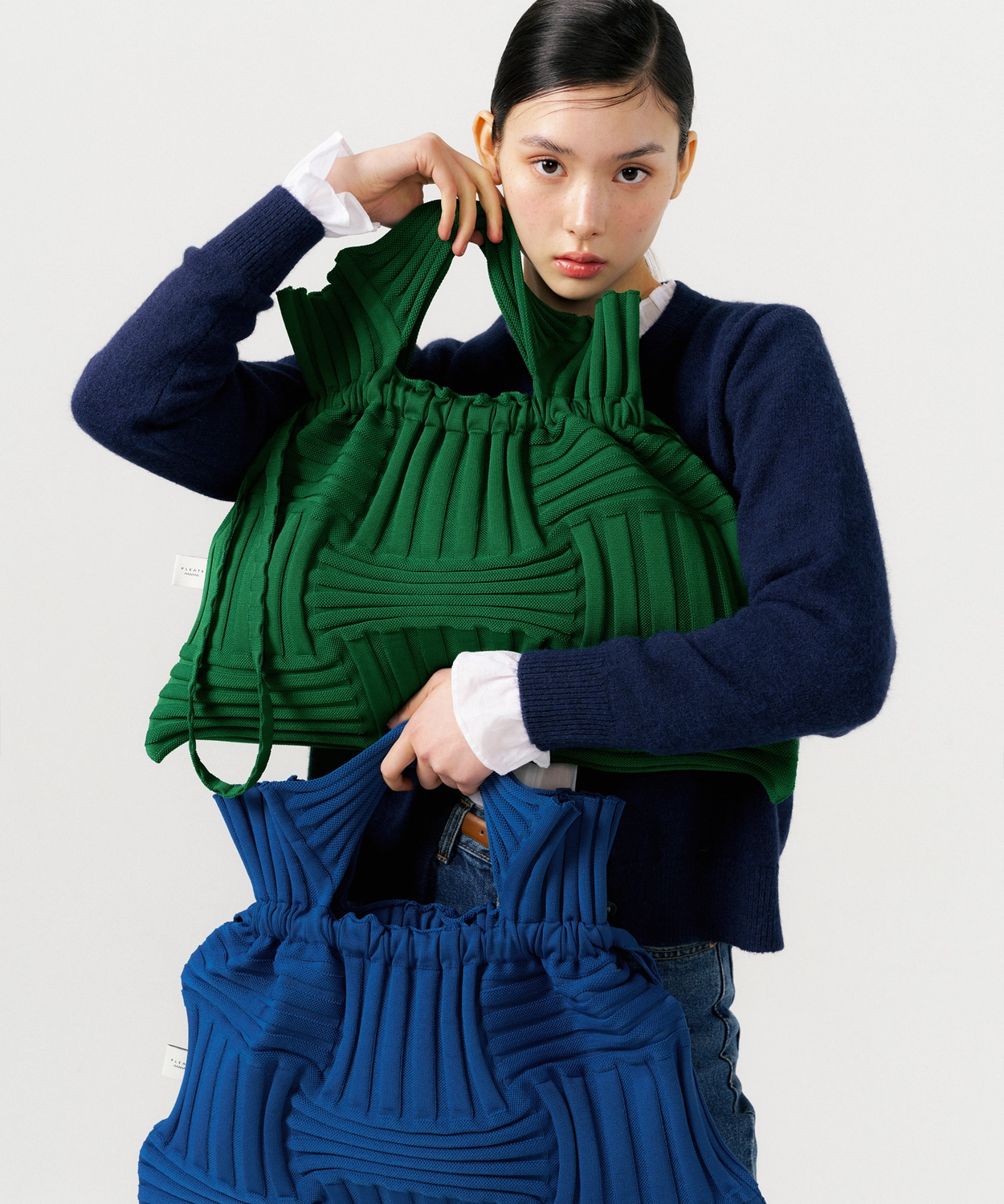 PLEATSMAMA Big Bow Bag靈感來自品牌標誌性的蝴蝶結百摺設計,採用91%回收聚酯纖維和9%回收彈性纖維混紡材質,兼具環保與輕盈耐用。