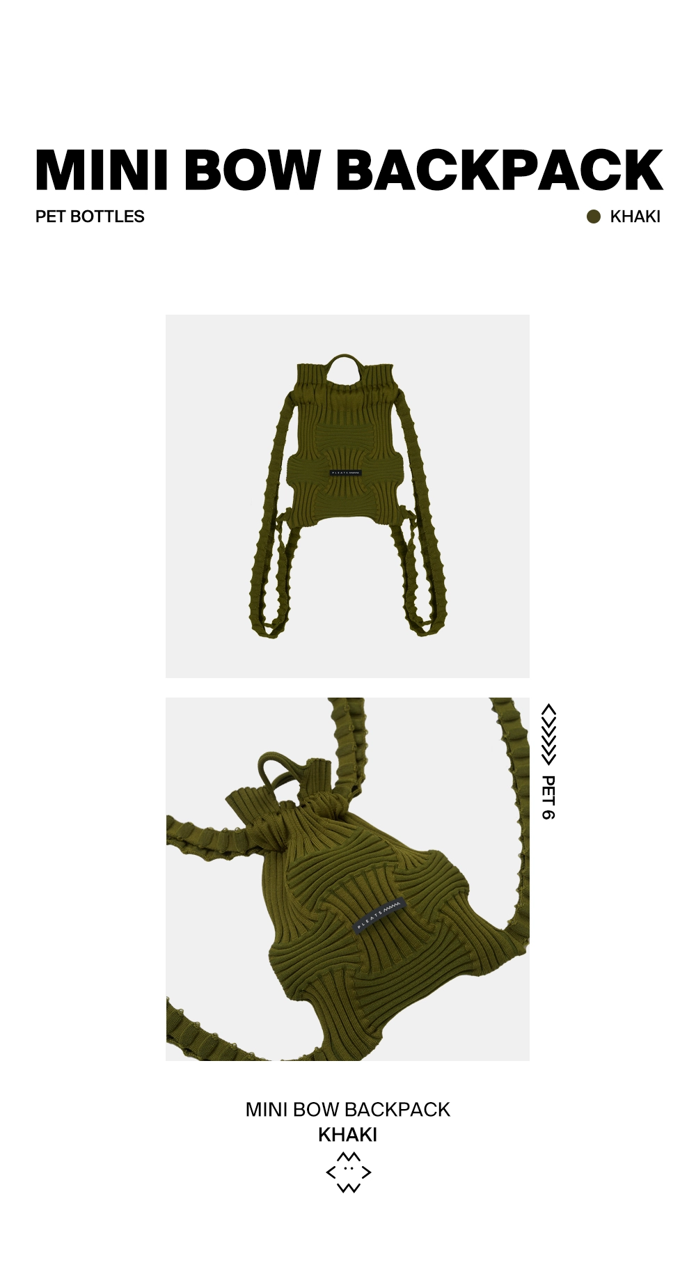 韓國PLEATSMAMA品牌以環保為宗旨,使用韓國首創的回收聚酯纖維「regen korea」製造,Mini Bow系列每個背包平均回收6個PET膠樽。
