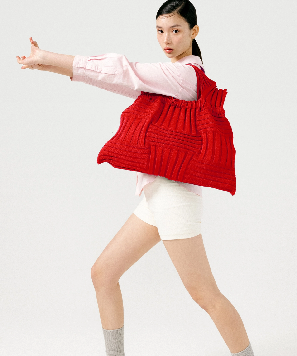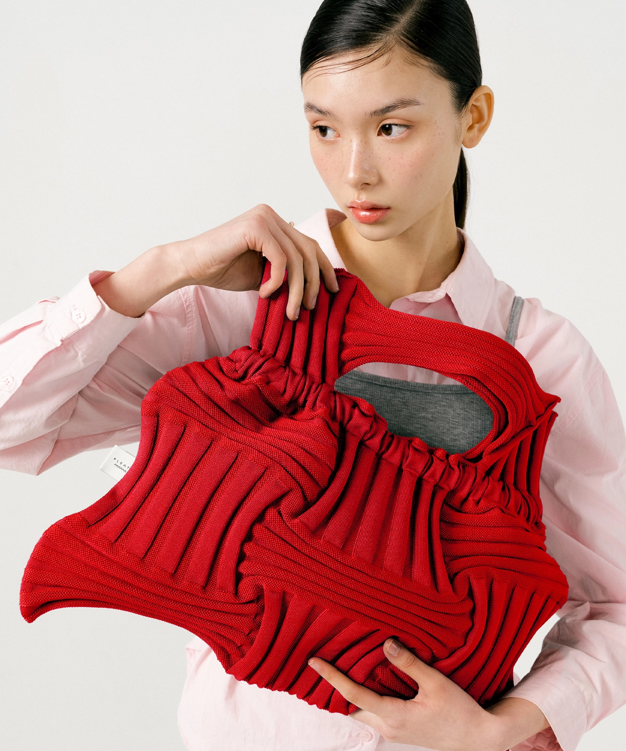 PLEATSMAMA Big Bow Bag靈感來自品牌標誌性的蝴蝶結百摺設計,採用91%回收聚酯纖維和9%回收彈性纖維混紡材質,兼具環保與輕盈耐用。