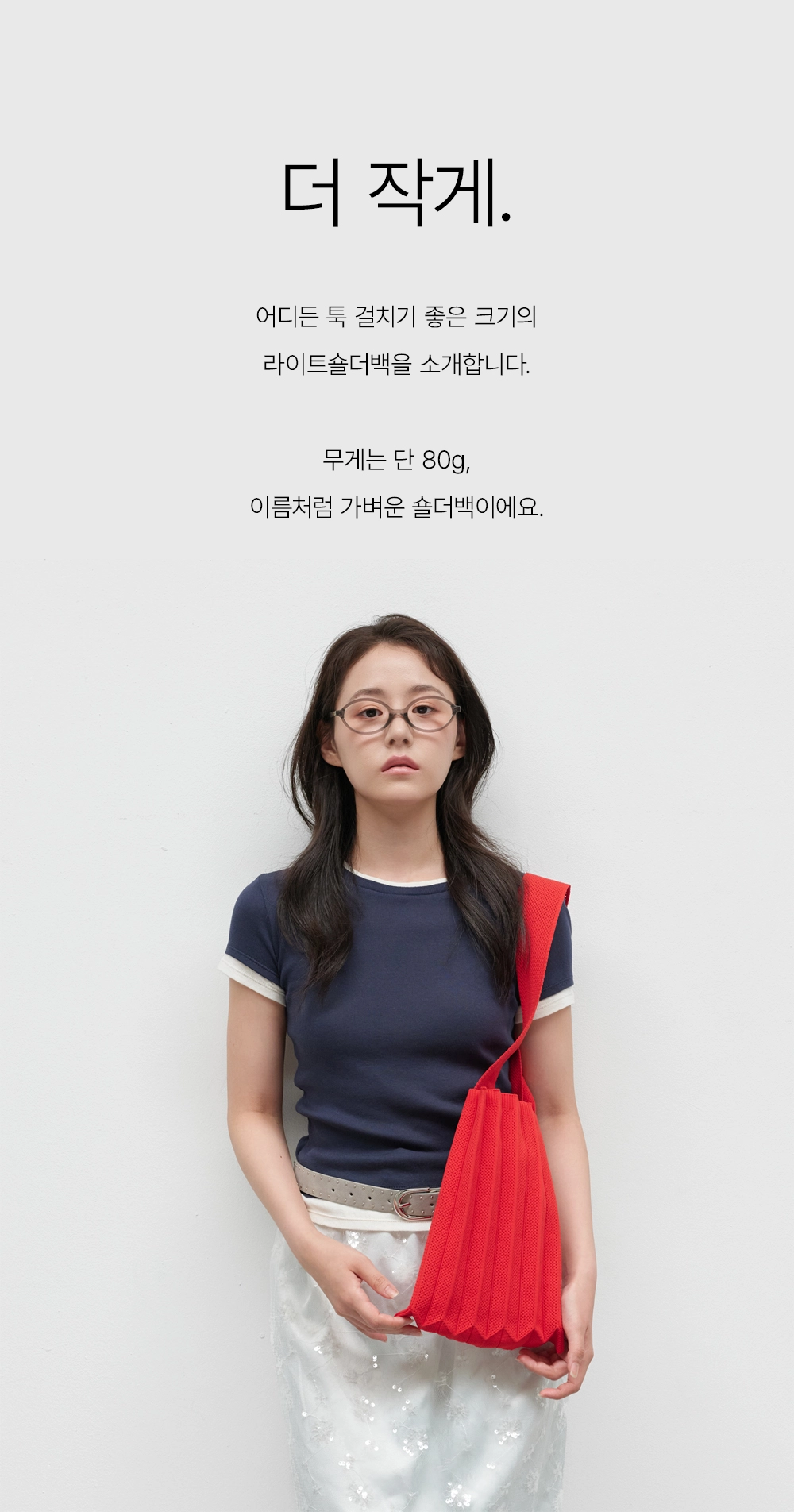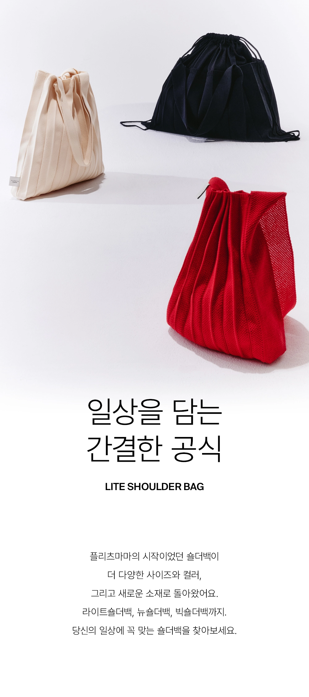 Light Shoulder Bag 以 PLEATSMAMA 的招牌壓褶編織結構為基礎,打造輕巧且柔軟的日常容器,強調便於肩背、不易產生負擔的設計理念。可輕鬆肩背的自然貼合設計,適合長時間使用也不感疲累。整體輕盈柔軟,容量佳,皺褶質地具有一定的延展性與形塑能力。