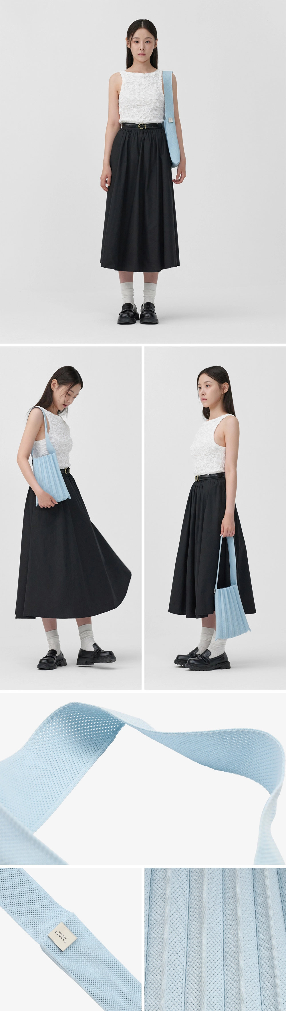 Light Shoulder Bag 以 PLEATSMAMA 的招牌壓褶編織結構為基礎,打造輕巧且柔軟的日常容器,強調便於肩背、不易產生負擔的設計理念。可輕鬆肩背的自然貼合設計,適合長時間使用也不感疲累。整體輕盈柔軟,容量佳,皺褶質地具有一定的延展性與形塑能力。