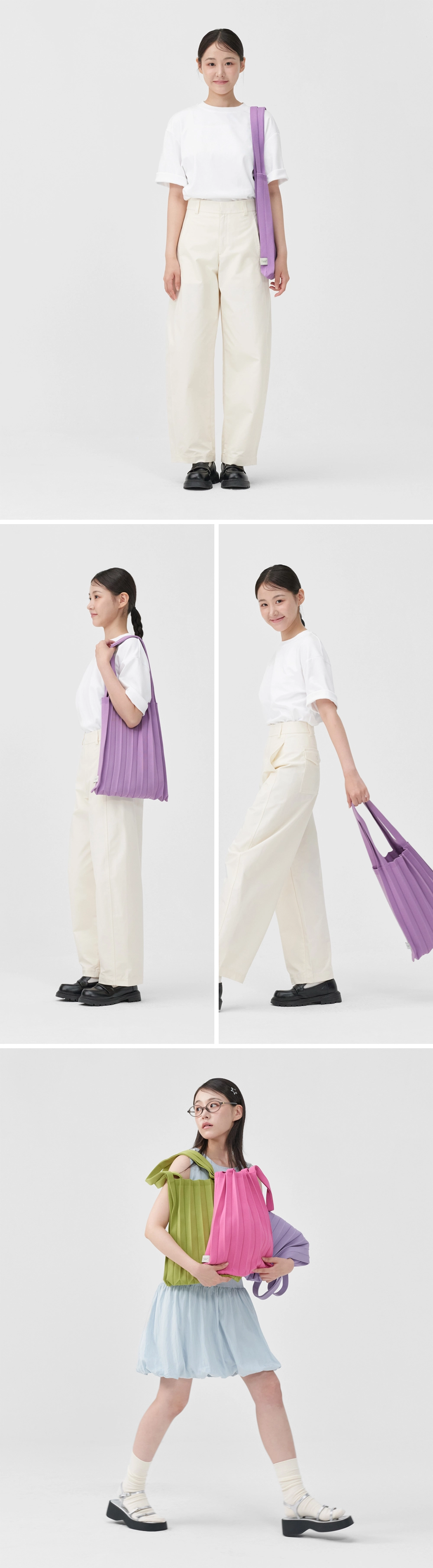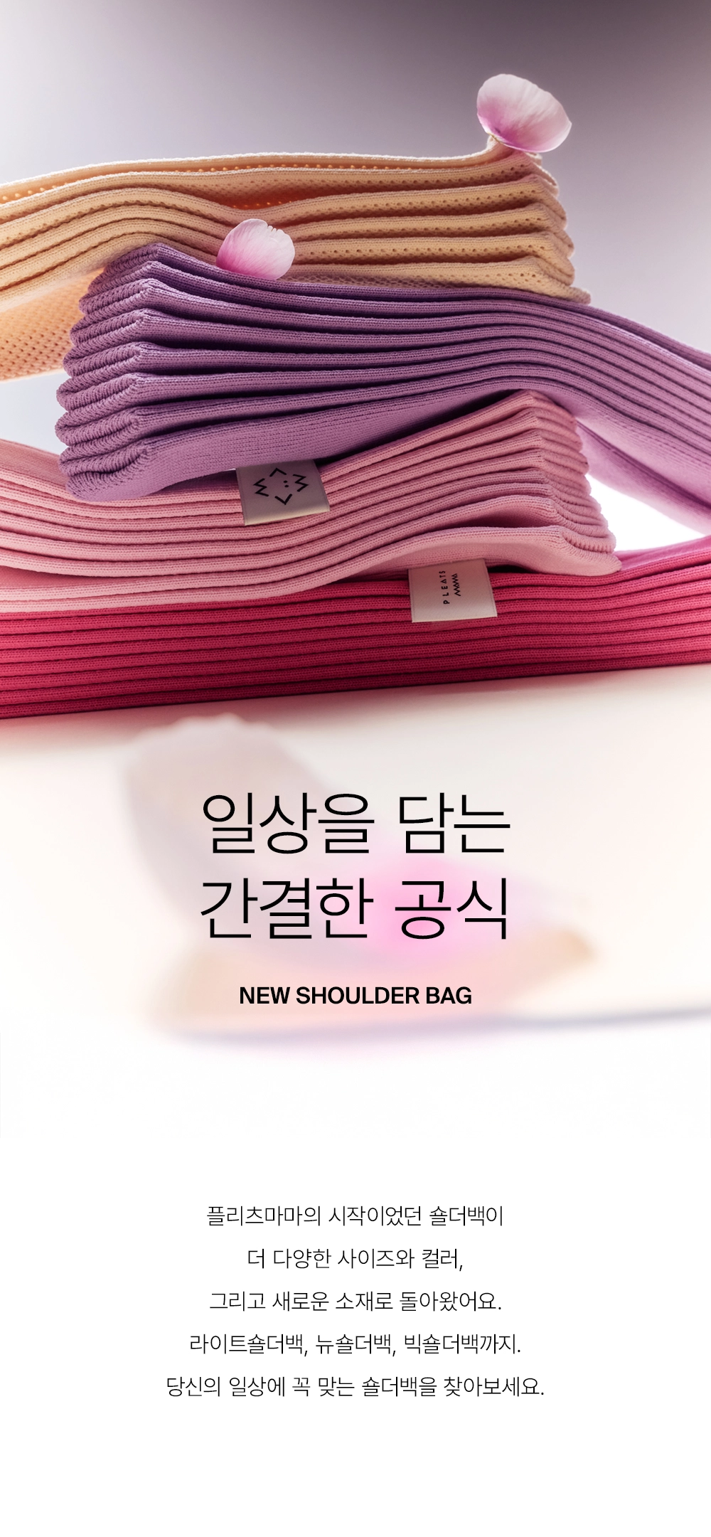 New Shoulder Bag 是 PLEATSMAMA 全新系列的標誌性容量肩背包,採用品牌經典的壓褶針織工藝,兼具質感與實用機能 。除了純色,亦推出亮片款式如 Glitter Stone Brown(閃耀巧克力棕)等,增添華麗效果 。