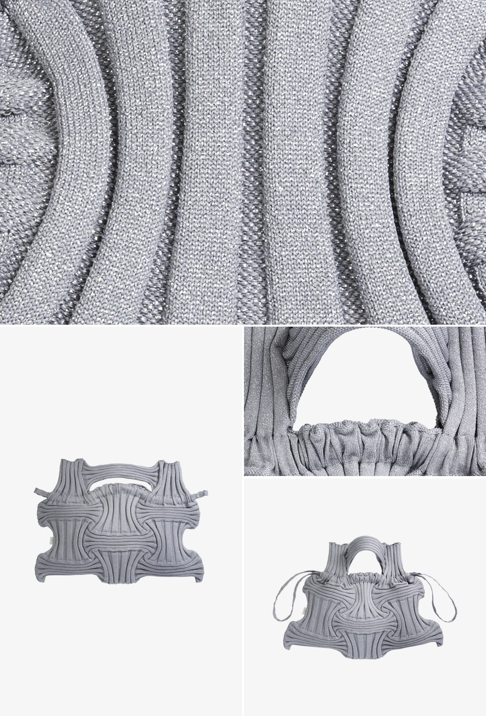 PLEATSMAMA Big Bow Bag Glitter Silver