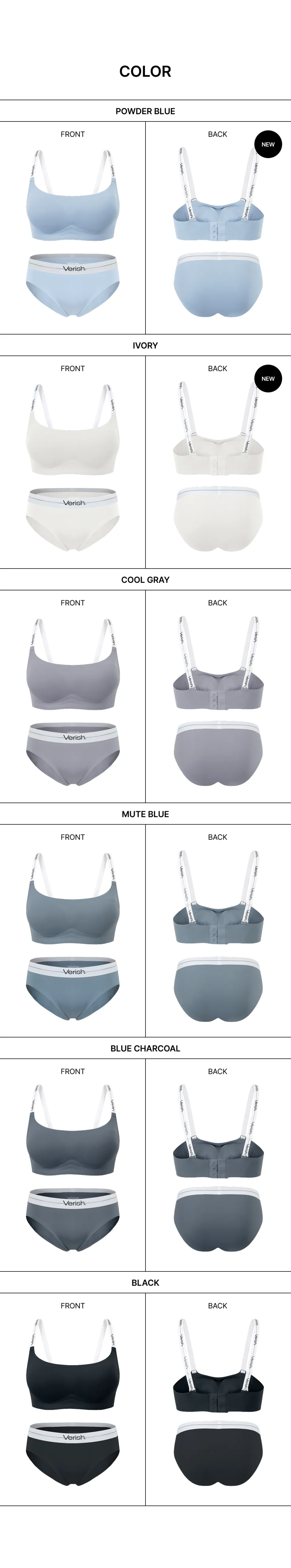 韓國直送 VERISH - Cool Fit Bra Volume Fit Logo Square 清涼貼身胸圍 豐滿效果方領及內褲套裝