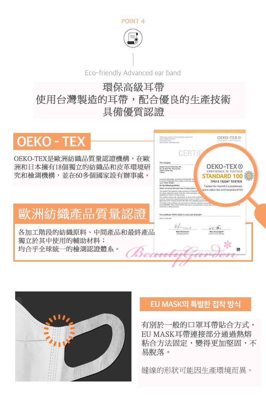 - 領有國際環保紡織協會發出的OEKO-TEX STANDARD 100標籤,生產過程中絕無添加任何對人體有害的物質
