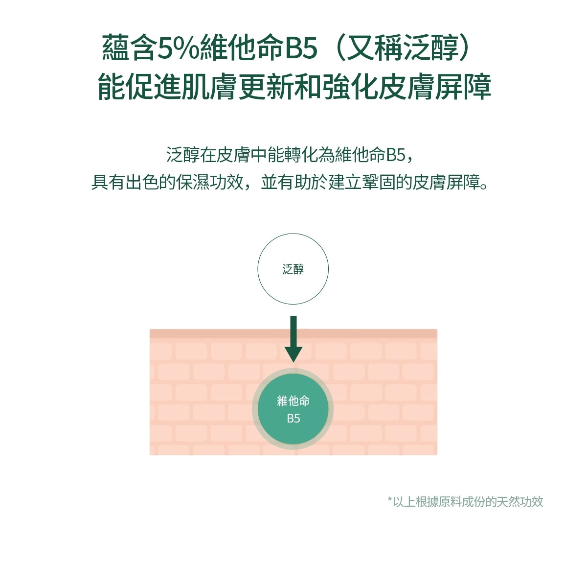 - 舒緩凝膠霜,含有5%維生素B5(泛醇),可深層保濕和保護皮膚。