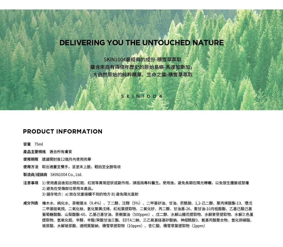 SKIN1004理膚天使 積雪草茶樹B5面霜75ml | 官方授權-香港認可零售商