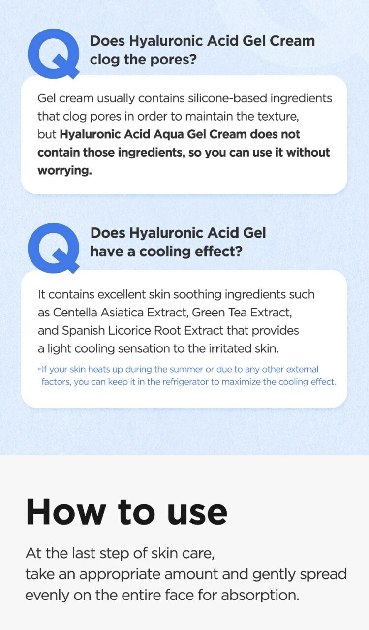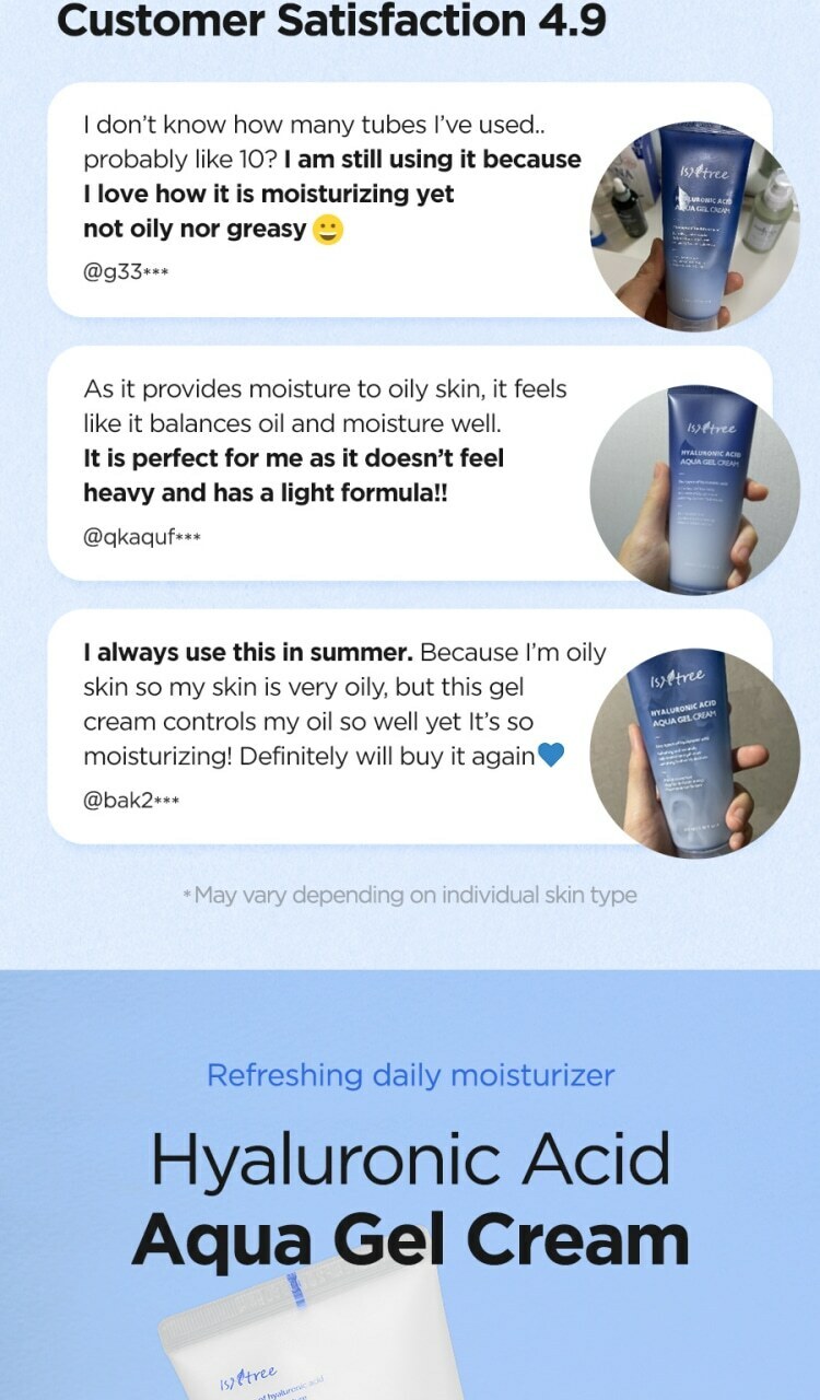 Isntree Hyaluronic Acid Aqua Gel Cream透明質酸水凝啫喱面霜100ml