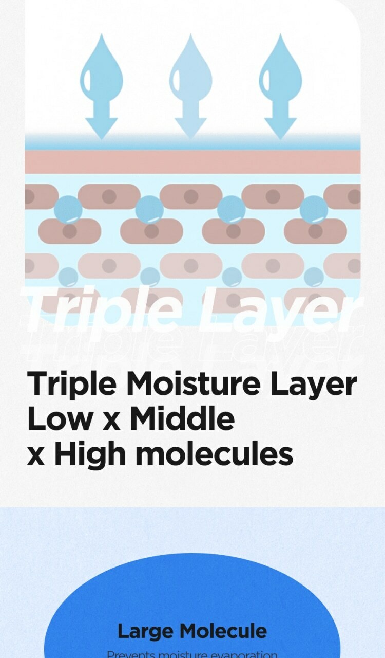 • 三重保濕屏障:聚合透明質酸能夠保護肌膚水分屏障,分層鎖水,深層滋潤乾燥肌膚。