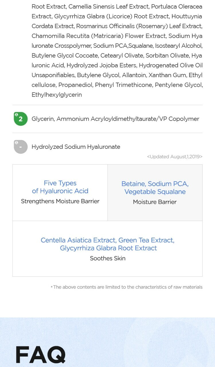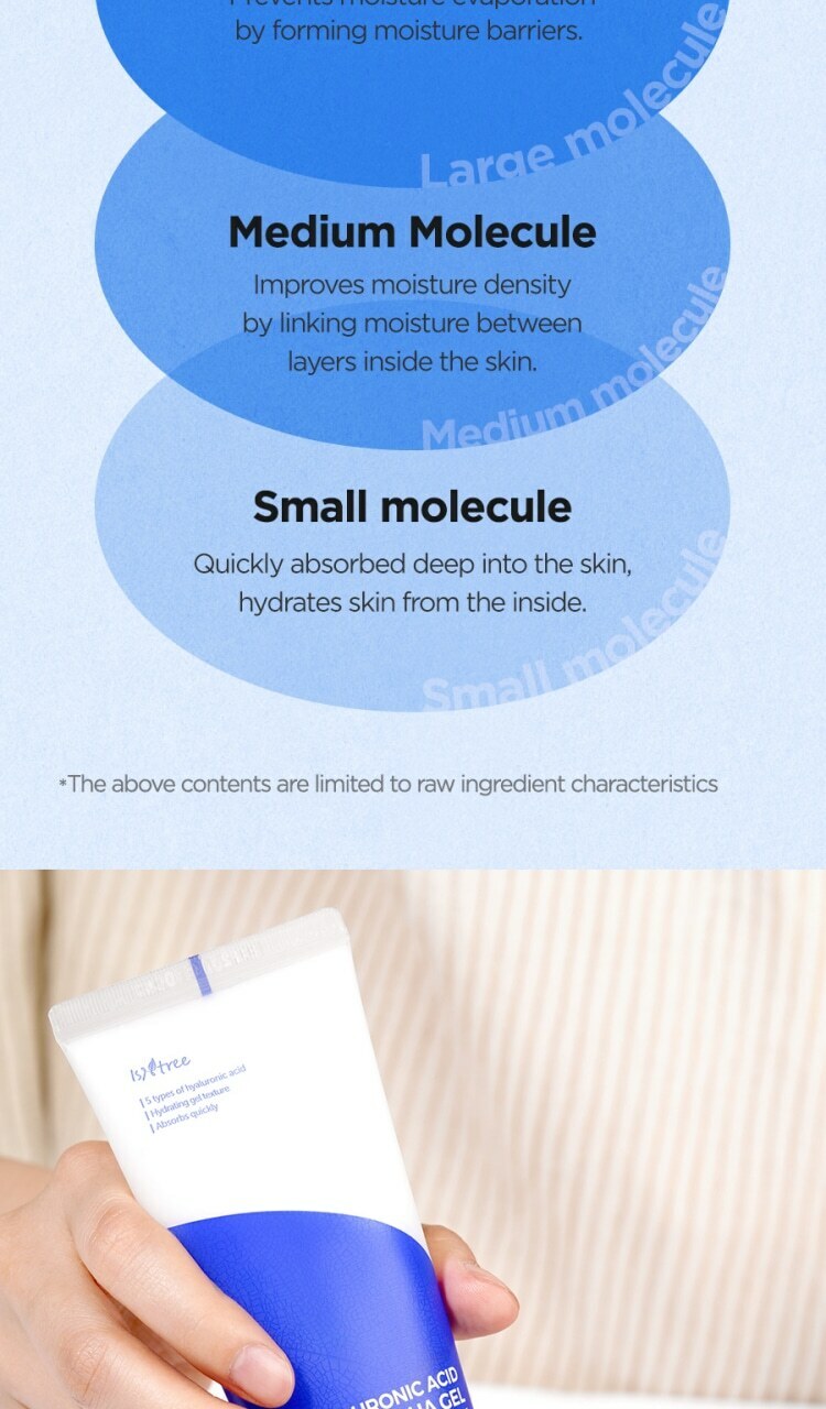• 含 5 種不同分子量的透明質酸(低分子、中分子、高分子),提供豐富的水分補充。