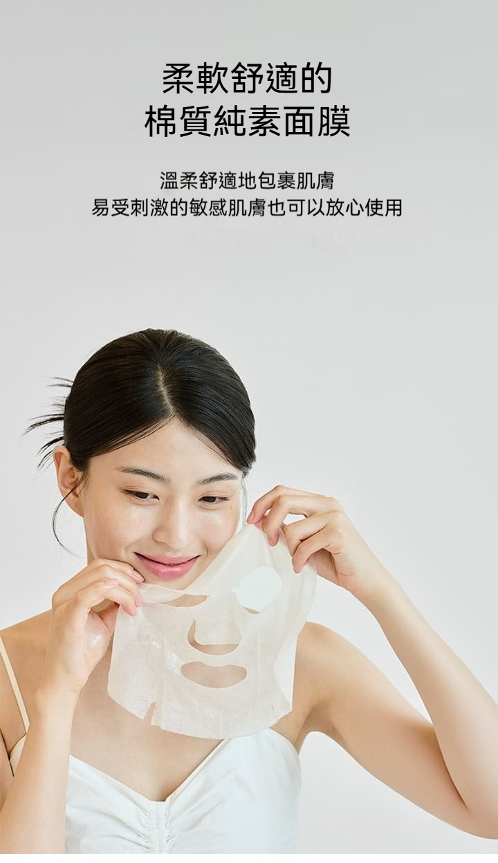 - 柔軟舒適的面膜輕柔地黏附在肌膚上,甚至適合敏感肌膚。