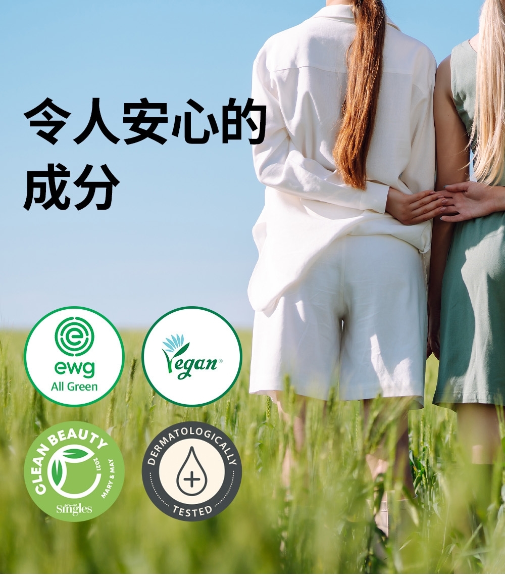 - 全成分皆為 EWG 綠色等級,純素配方,無動物實驗,敏感肌適用。