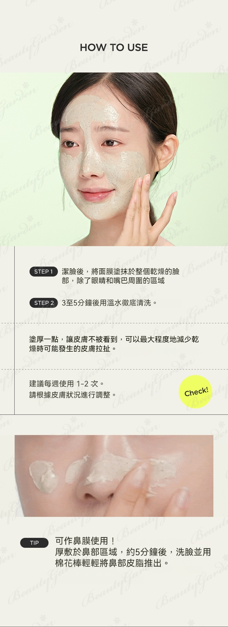 - 快速方便:只需敷3分鐘,即可達到深層清潔與肌膚舒緩的效果,特別適合忙碌的現代人快速護理肌膚。
