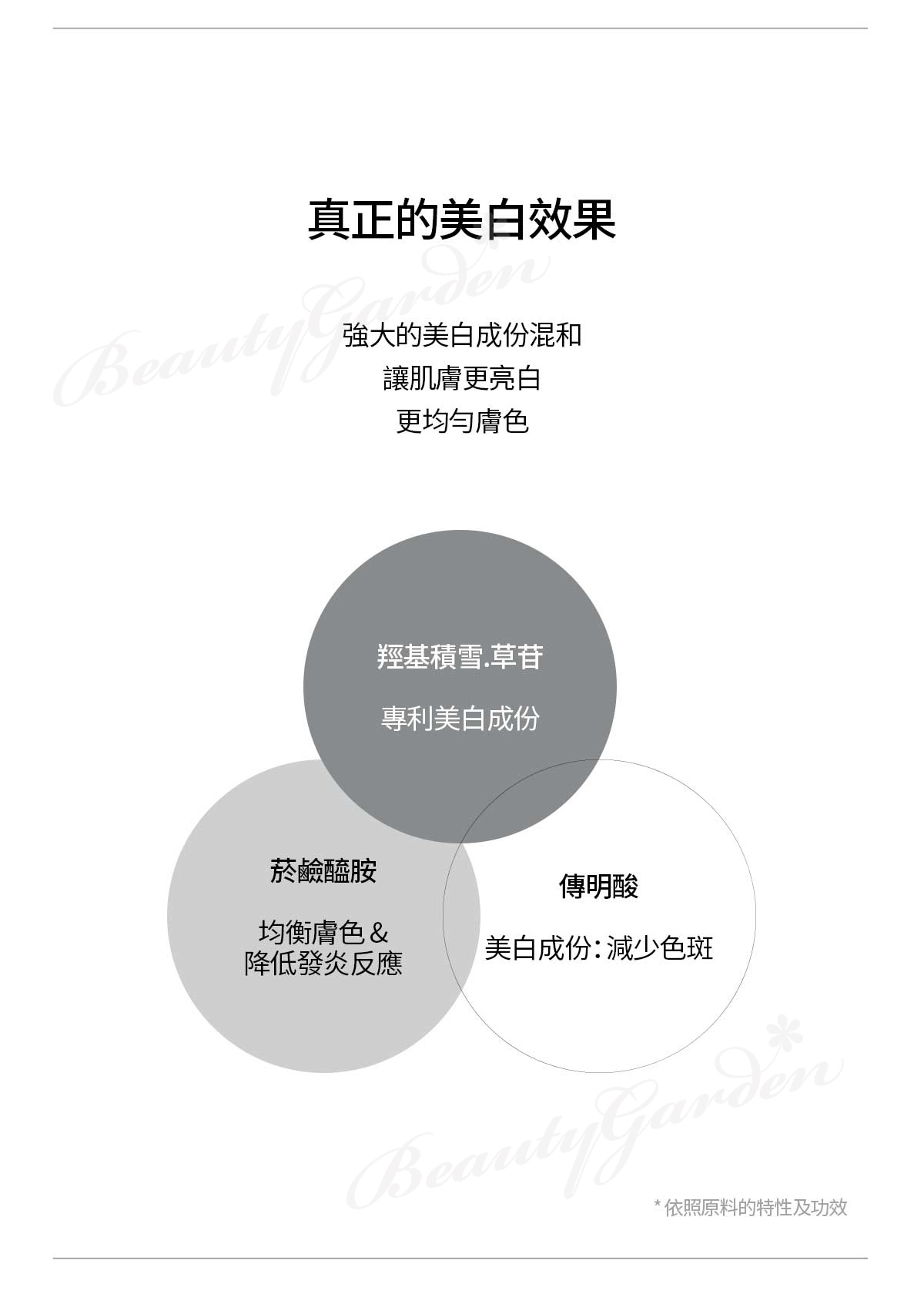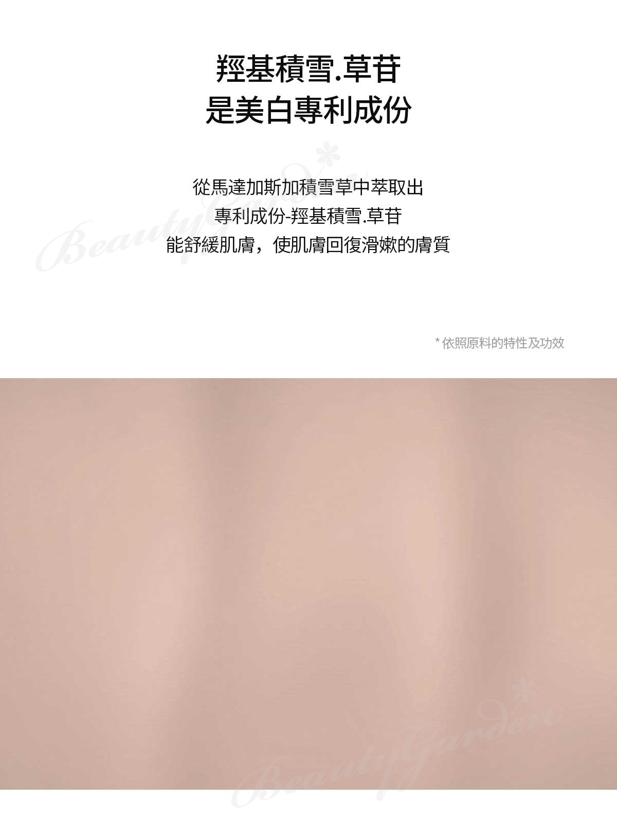 - Madewhite™(專利天然成分)提亮膚色,散發自然光澤