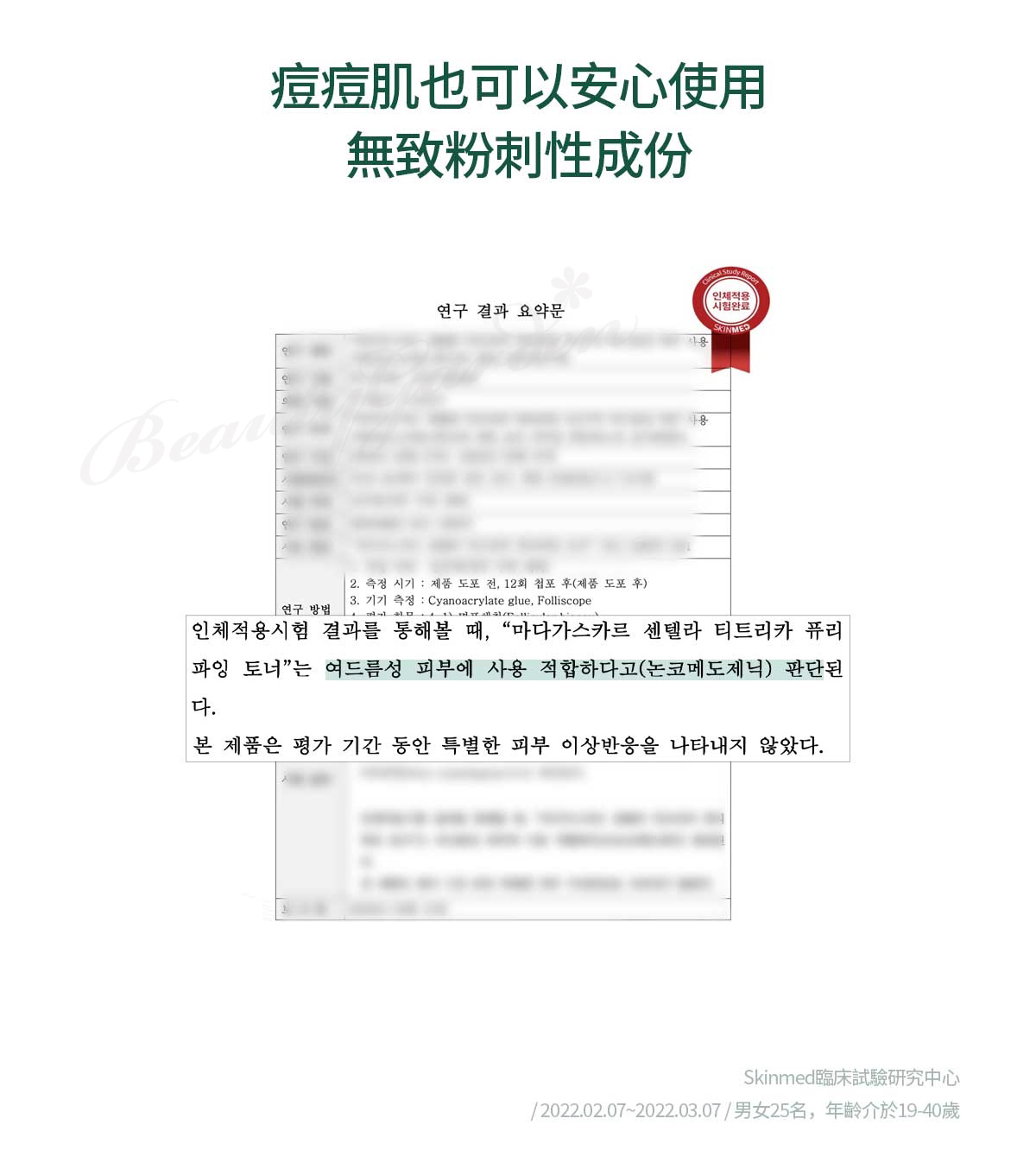- 完成非致粉刺測試和防過敏測試,確保適合所有皮膚類型