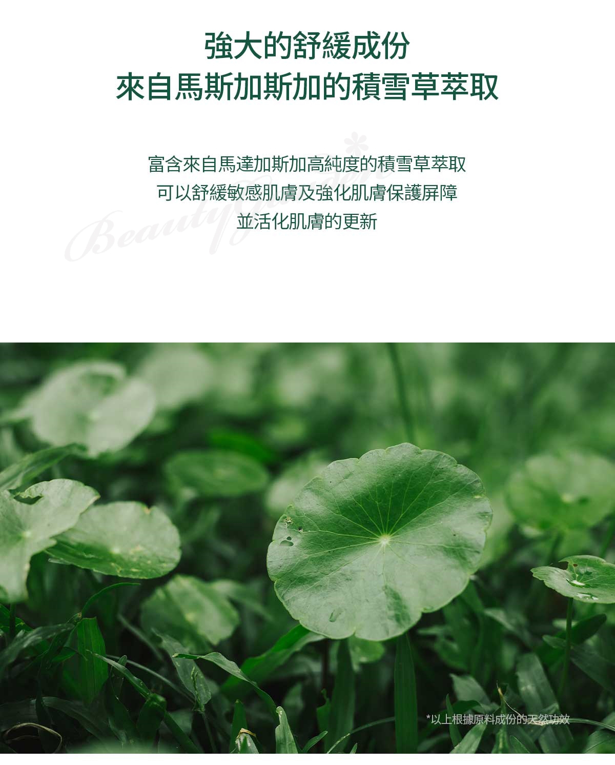 - 積雪草舒緩受刺激和敏感的皮膚