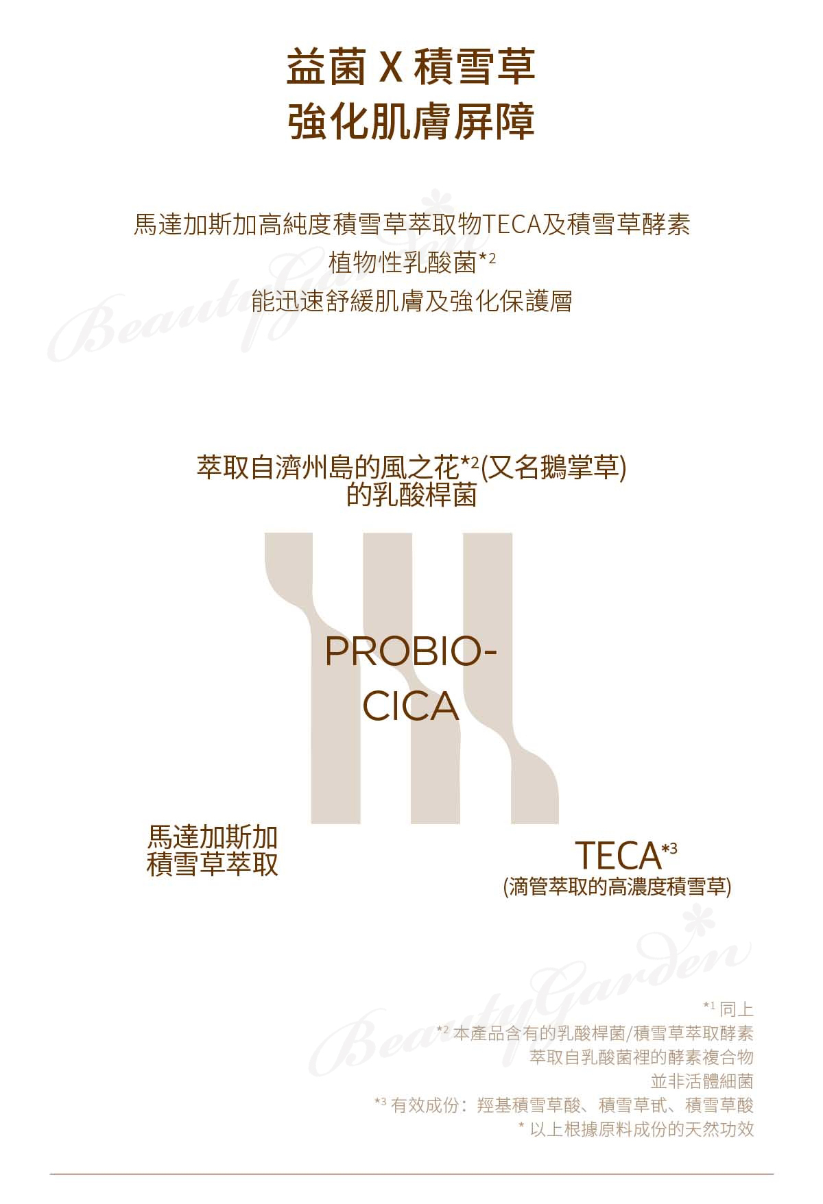 - Probiotic cica成分, 強化肌膚屏障護理。