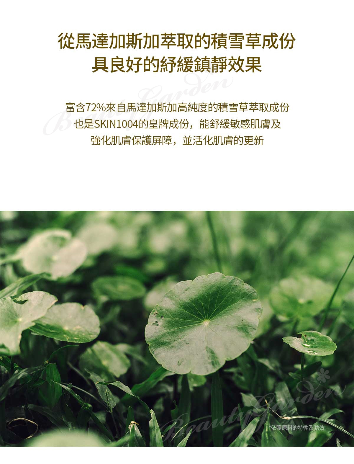 含72%馬達加斯加積雪草萃取,搭配神經醯胺NP、膽固醇與脂肪酸等天然皮膚脂質成分。