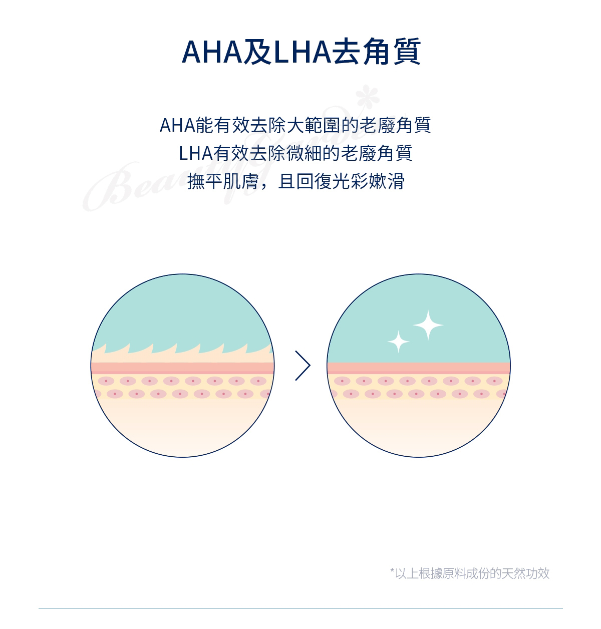 β-脂羥基酸 (LHA):一種溫和的去角質劑,可去除死皮細胞。