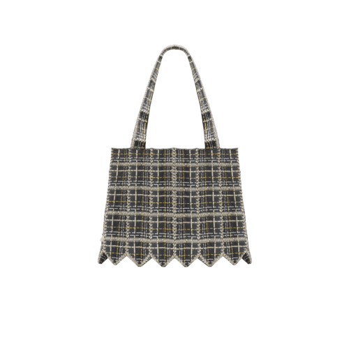 PLEATSMAMA Tweed Shopper Bag Stone Grey