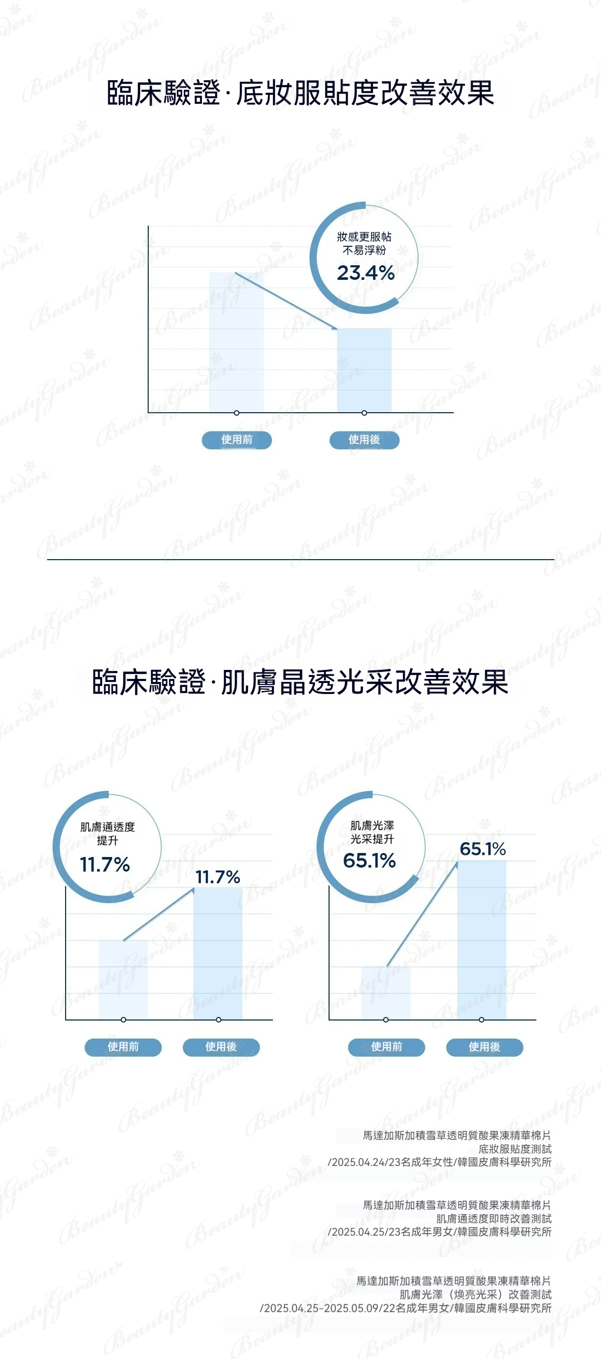 - 取下後輕拍至吸收,再進行後續精華或面霜護理。可早晚使用,妝前使用有助令妝容更貼服。
