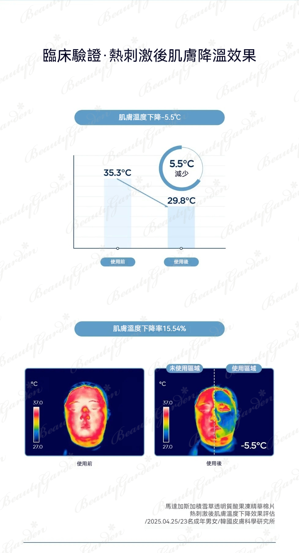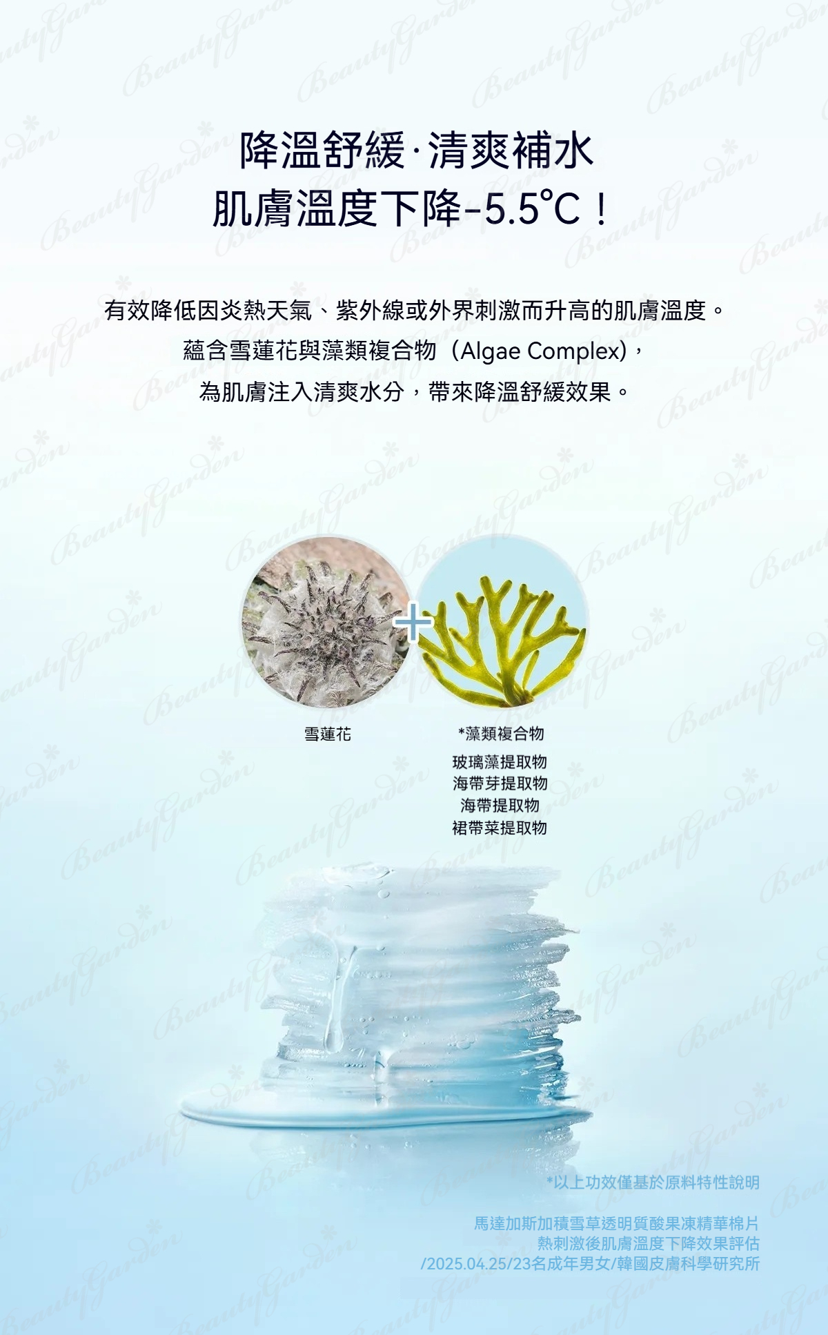 • 高貼服棉片設計:可作局部濕敷,加強鎮靜及即時補水效果