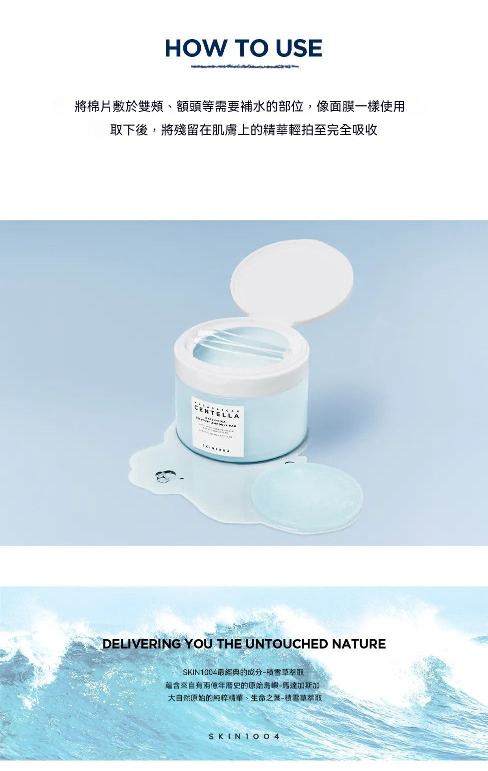 每一片棉片都浸滿精華,能即時為肌膚補水、降紅、舒緩乾燥不適,同時提升後續保養吸收度,特別適合缺水、敏感或需要急救保濕的肌膚。