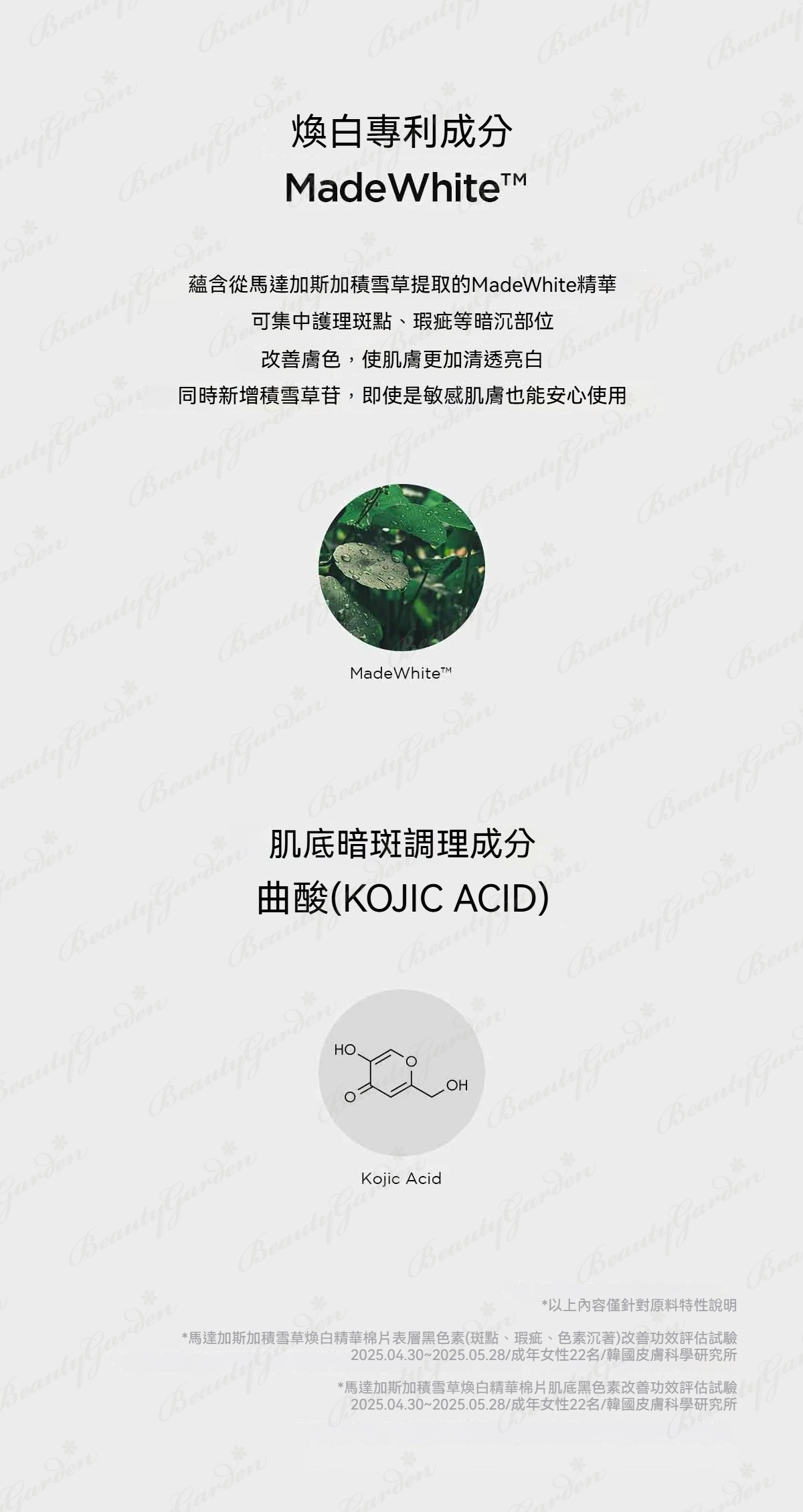 • 含亮白淡斑複合配方,有助改善色斑與暗沉問題