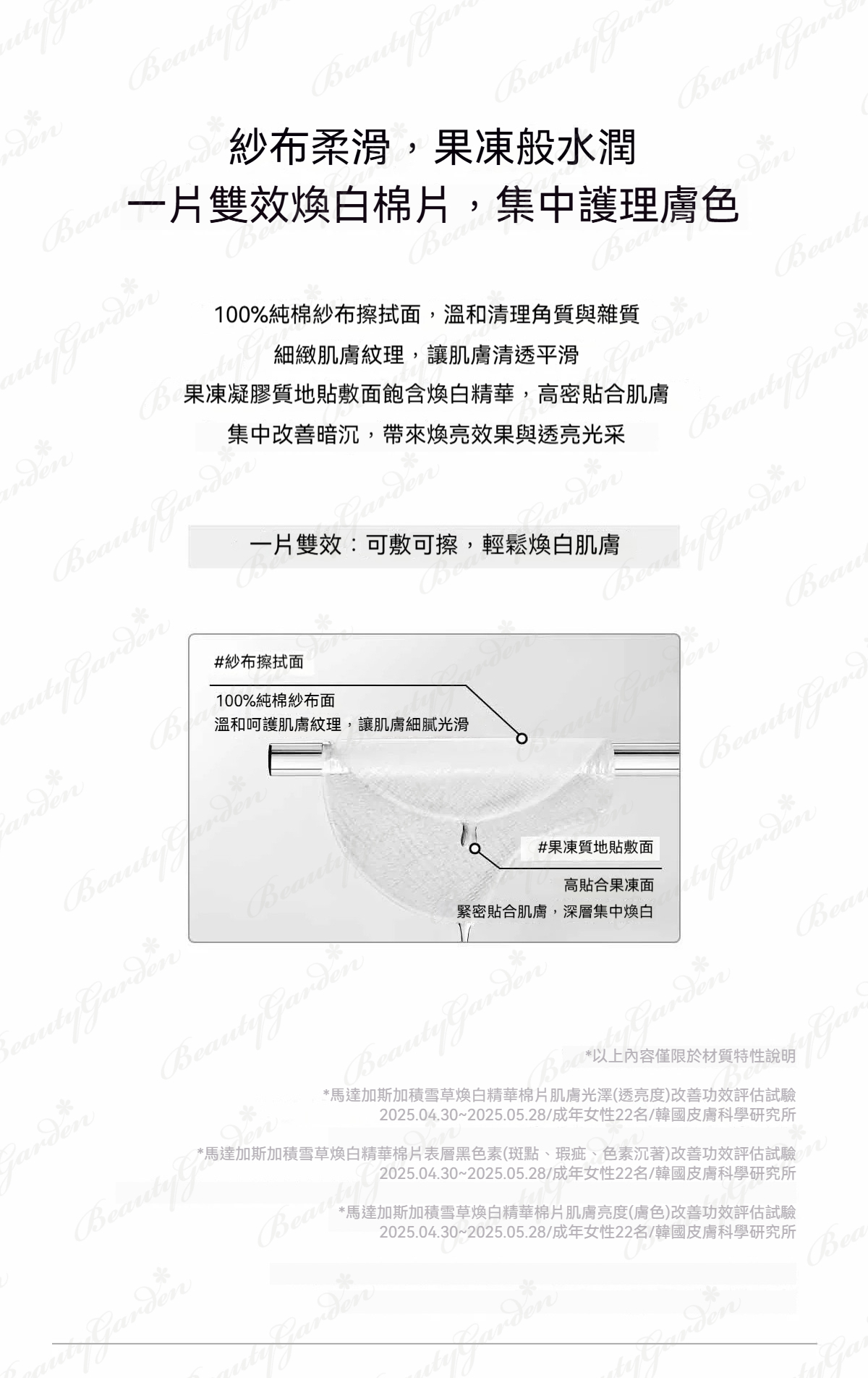 • 安瓶級精華浸潤棉片,保濕同時提升肌膚透亮感