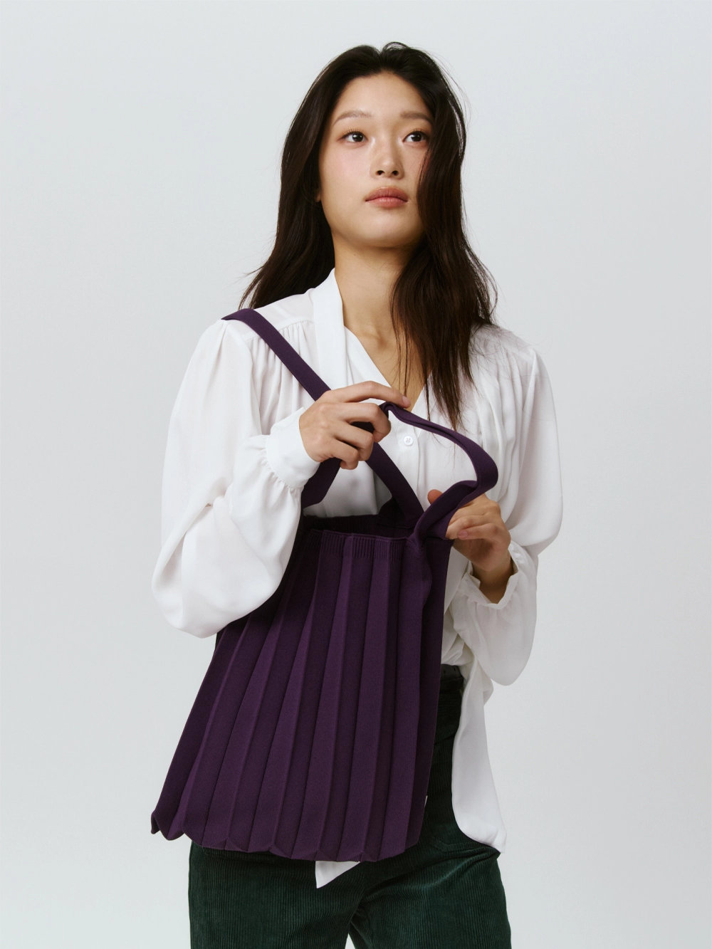 New Shoulder Bag 是 PLEATSMAMA 全新系列的標誌性容量肩背包,採用品牌經典的壓褶針織工藝,兼具質感與實用機能 。