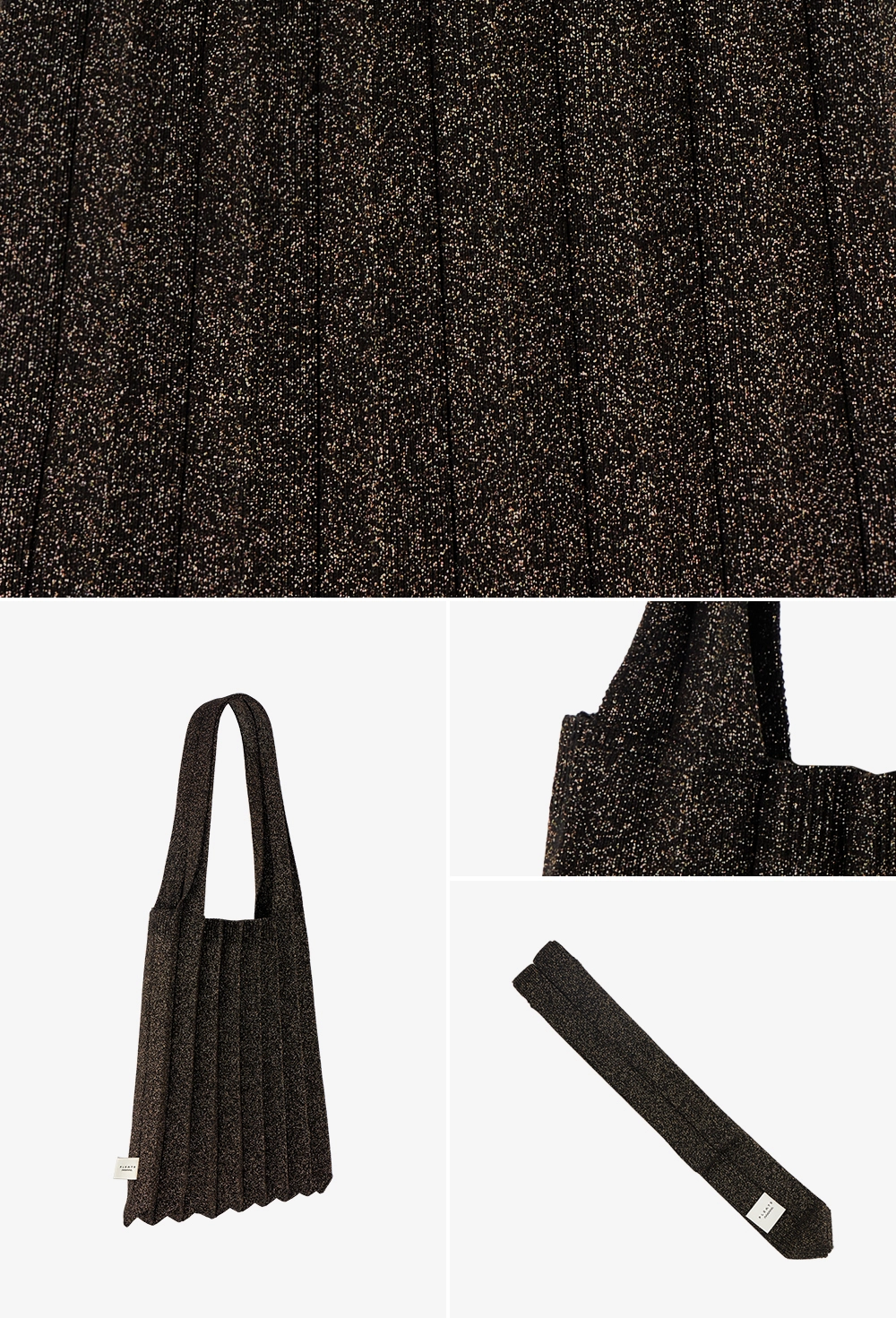 PLEATSMAMA New Shoulder Bag Glitter Black Brown