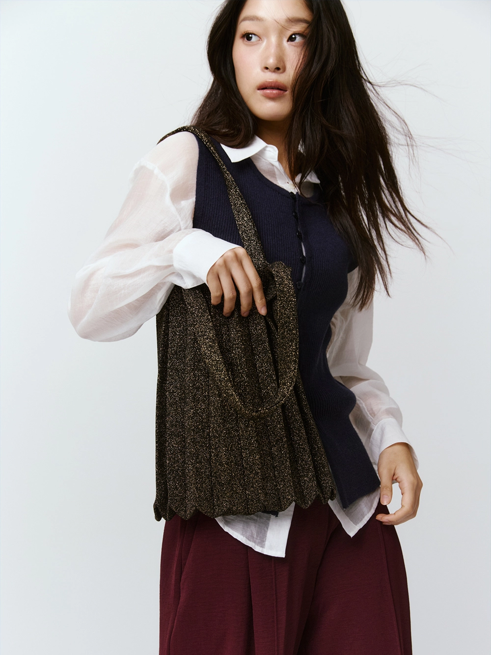 New Shoulder Bag 是 PLEATSMAMA 全新系列的標誌性容量肩背包,採用品牌經典的壓褶針織工藝,兼具質感與實用機能 。
