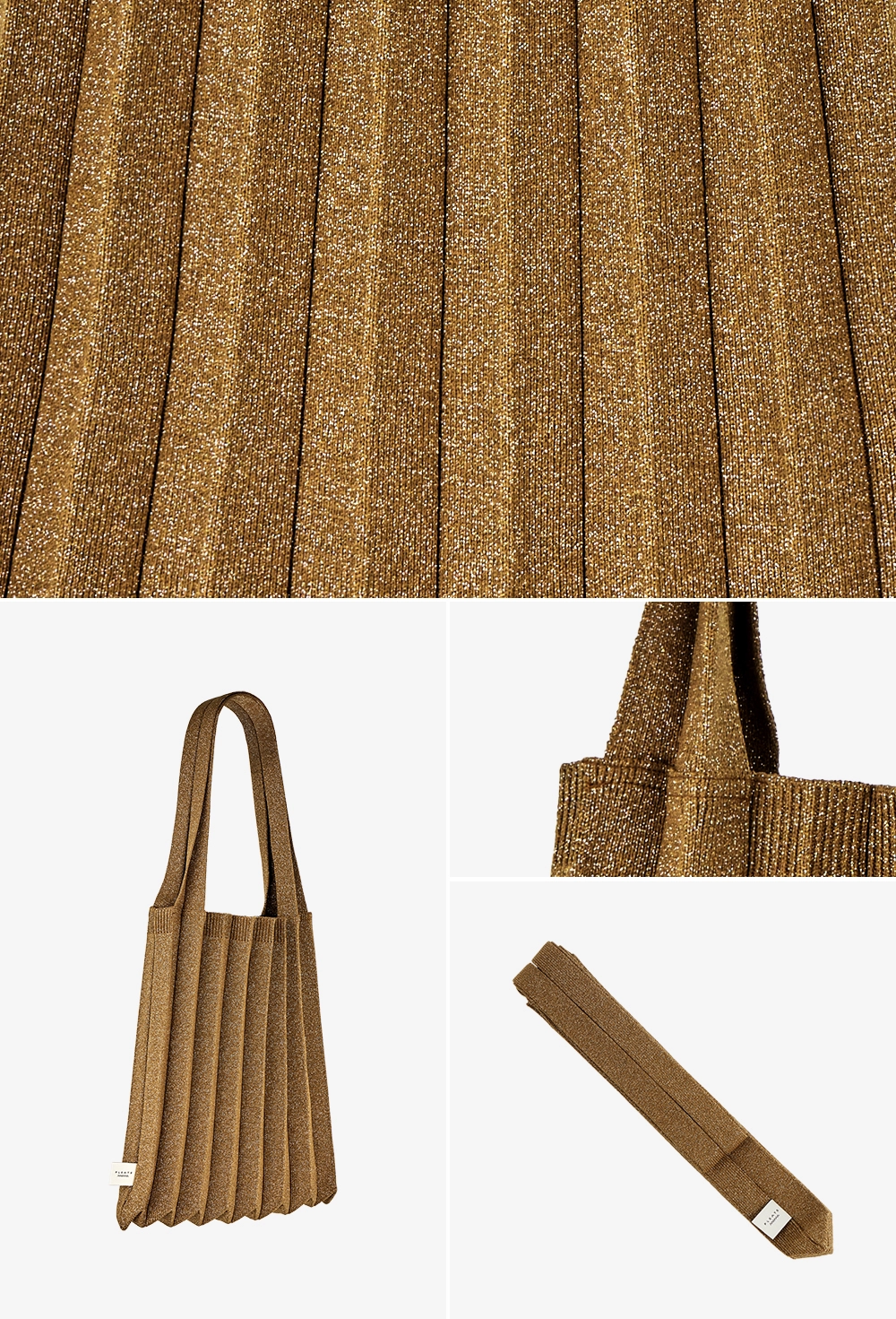 PLEATSMAMA New Shoulder Bag Glitter Camel