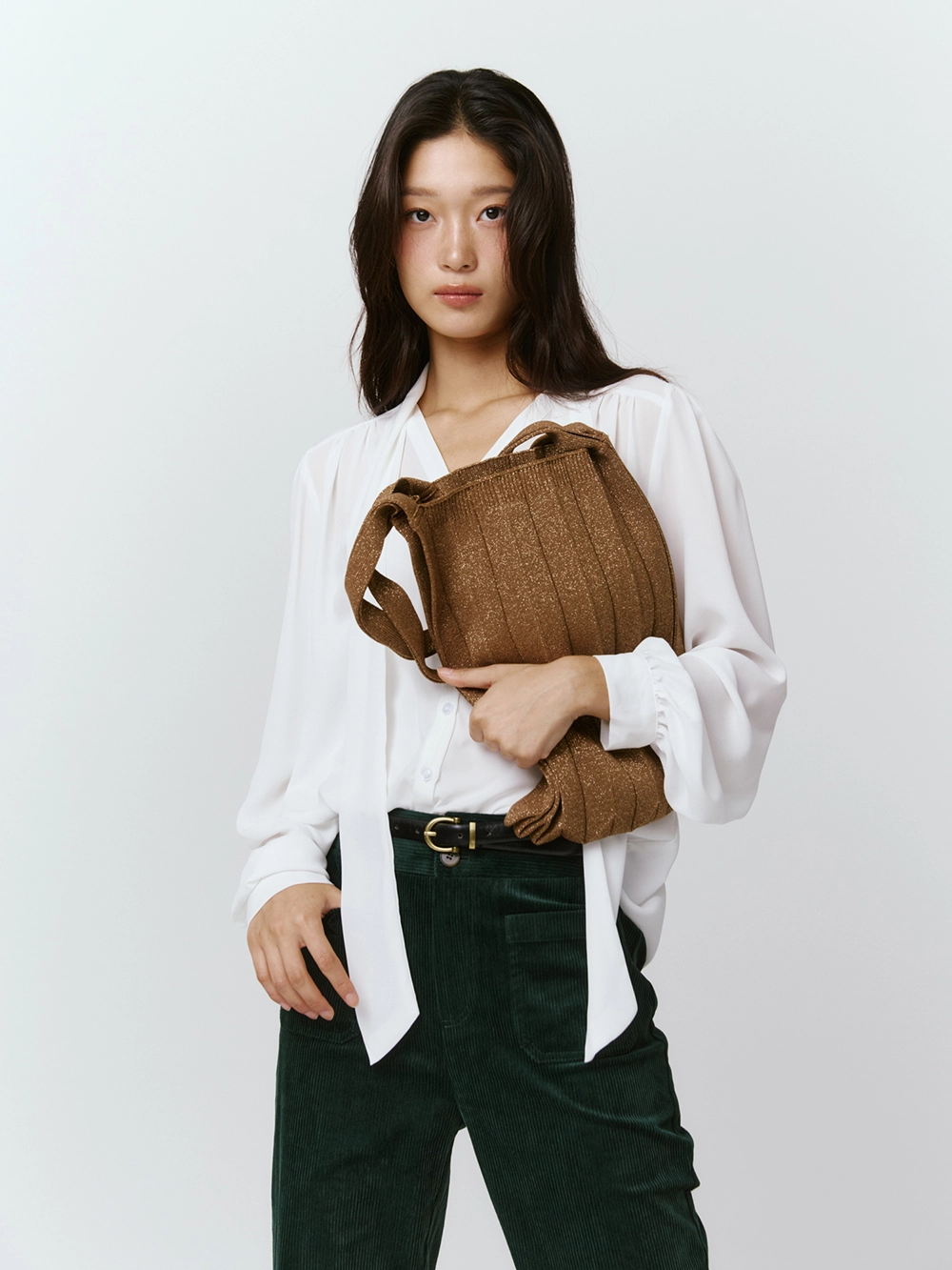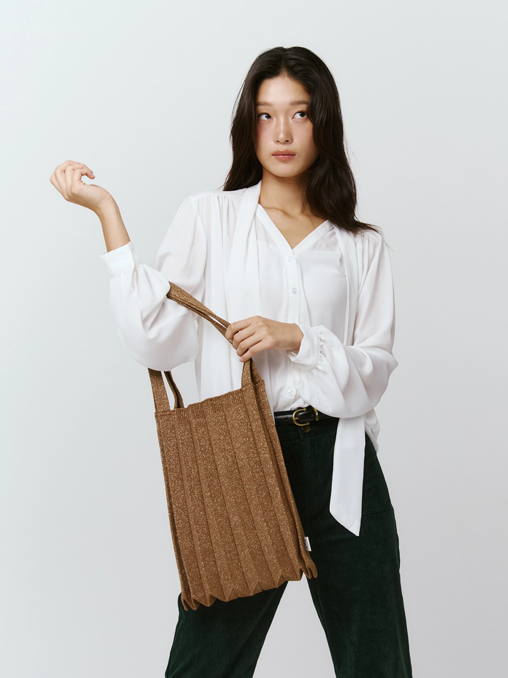 New Shoulder Bag 是 PLEATSMAMA 全新系列的標誌性容量肩背包,採用品牌經典的壓褶針織工藝,兼具質感與實用機能 。