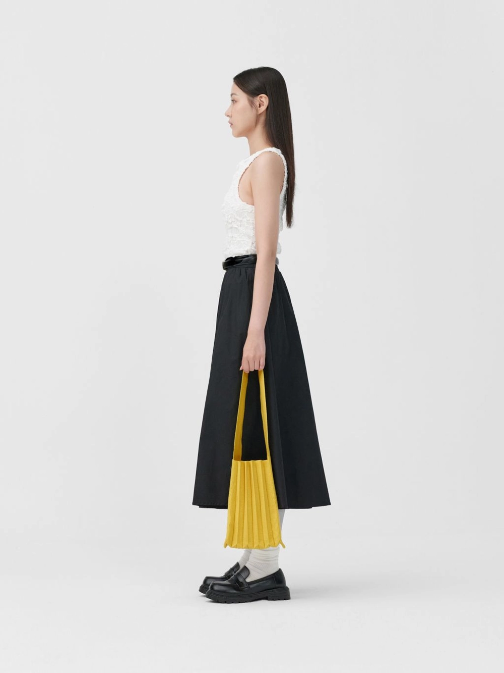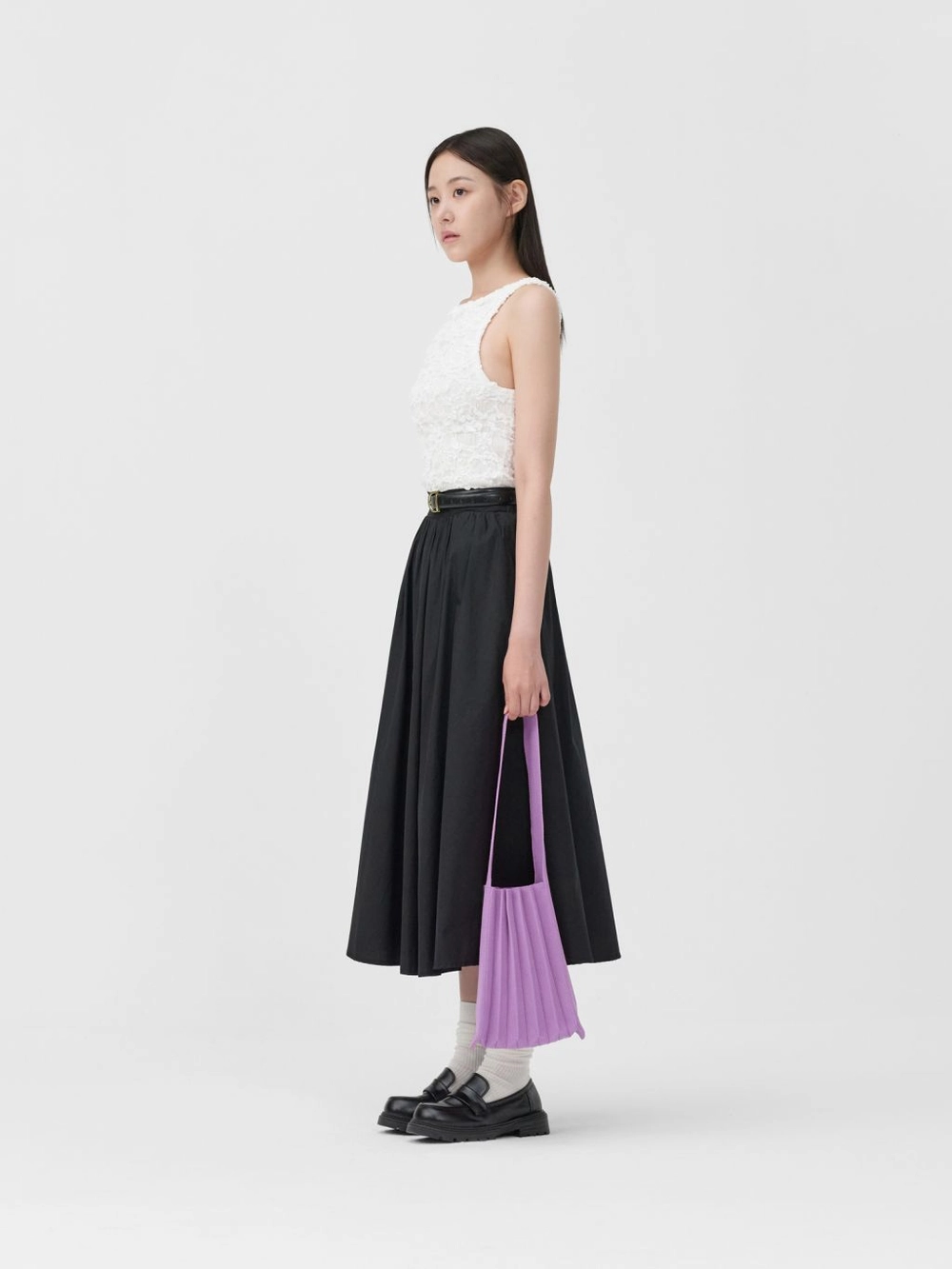 以PLEATSMAMA的招牌壓褶編織結構為基礎,打造輕巧且柔軟的日常容器,強調便於肩背、不易產生負擔的設計理念。