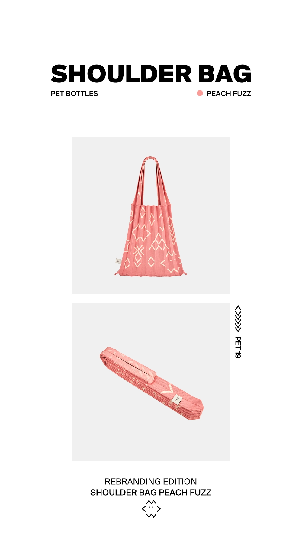 這款 Rebranding Edition Shoulder Bag 為 PLEATSMAMA 在品牌形象重塑(Rebranding)後推出的全新設計,將品牌的核心價值——“溫暖、有意義的鄰居形象”—融入產品中,透過可愛象徵性圖案展示品牌新精神:「我們捕捉了被珍惜的價值,以符號的形式呈現在PLEATSMAMA的經典包款上,揭開全新的品牌風貌。」